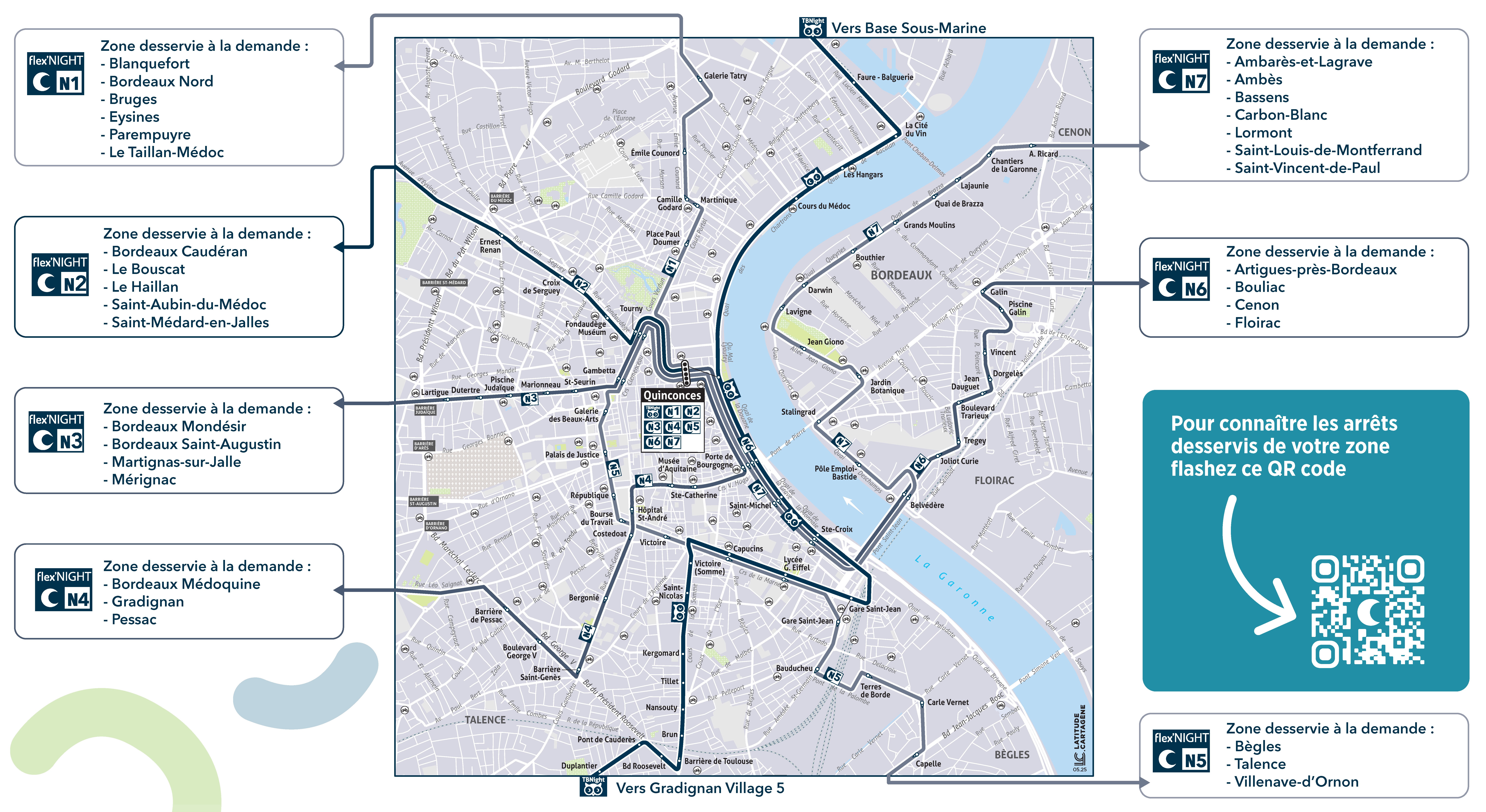 flex'NIGHT is THE transport service that serve a large number of stops in all the cities of Bordeaux Métropole and helps you come home at night!