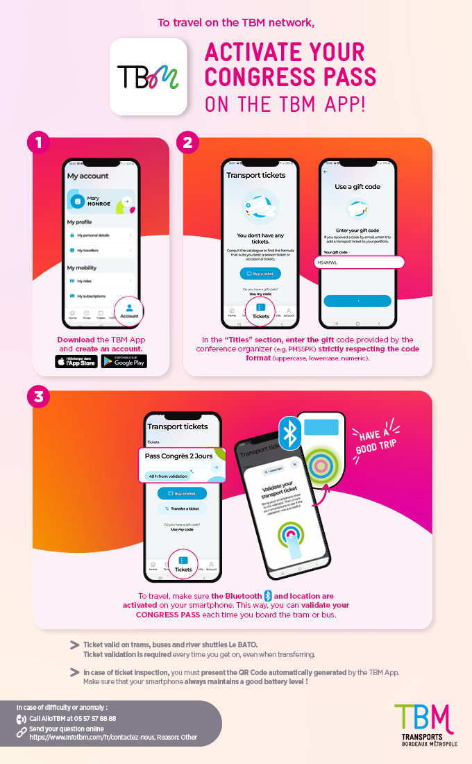 - Your CONGRESS PASS includes travel on tram, bus and BAT3 river shuttle lines. The period of validity of your CONGRESS PASS is indicated when you receive the code.