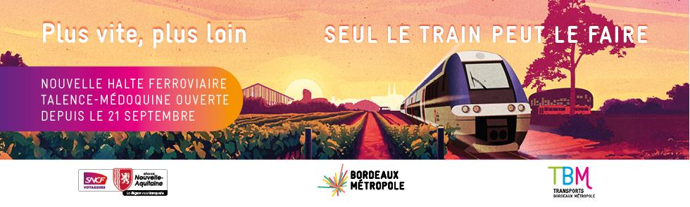 En connexion directe avec la Lianes 8 du réseau TBM, la halte de Talence - Médoquine rapproche le campus universitaire avec le nord de la métropole et la rive-droite.