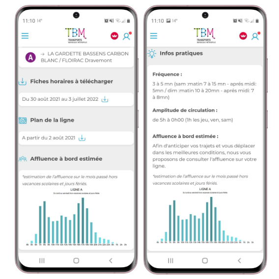 Retrouvez aussi l'affluence dans la rubrique "Lignes", en choisissant votre ligne et en consultant la partie "Infos pratiques" !