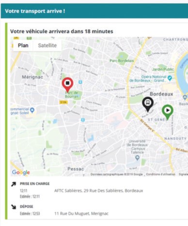 Confirmation du transport au moment de sa planification | Réassurance la veille du transport à 19h15 | Notification à l'approche du véhicule |