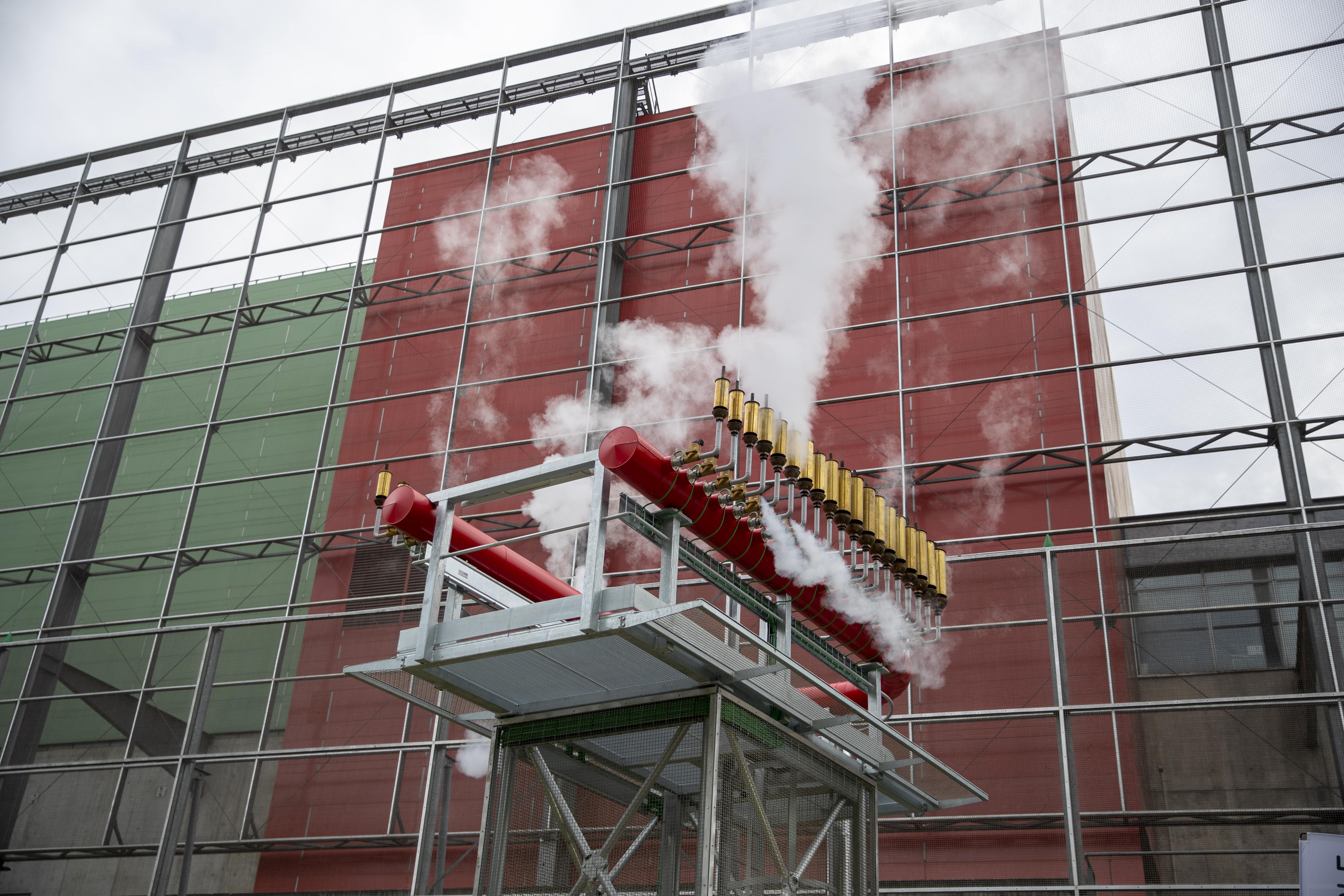LA VASE ET LE SEL (HOODOO CALLIOPE) – Bettina SAMSON | Bègles, rue Louis Blériot, côté rives de Garonne – 2019 Un monumental orgue à vapeur imaginé par Bettina Samson se dresse entre le Centre de Traitement et Valorisation des Déchets ASTRIA et les rives de la Garonne. Une fois par jour, ses sifflets alimentés par l’usine jouent un air évoquant la culture du Funeral Jazz et laissent émerger l’histoire coloniale et esclavagiste qui relia Bordeaux à l’île de Saint-Domingue. ©JB Mengès-Bordeaux Métropole. |