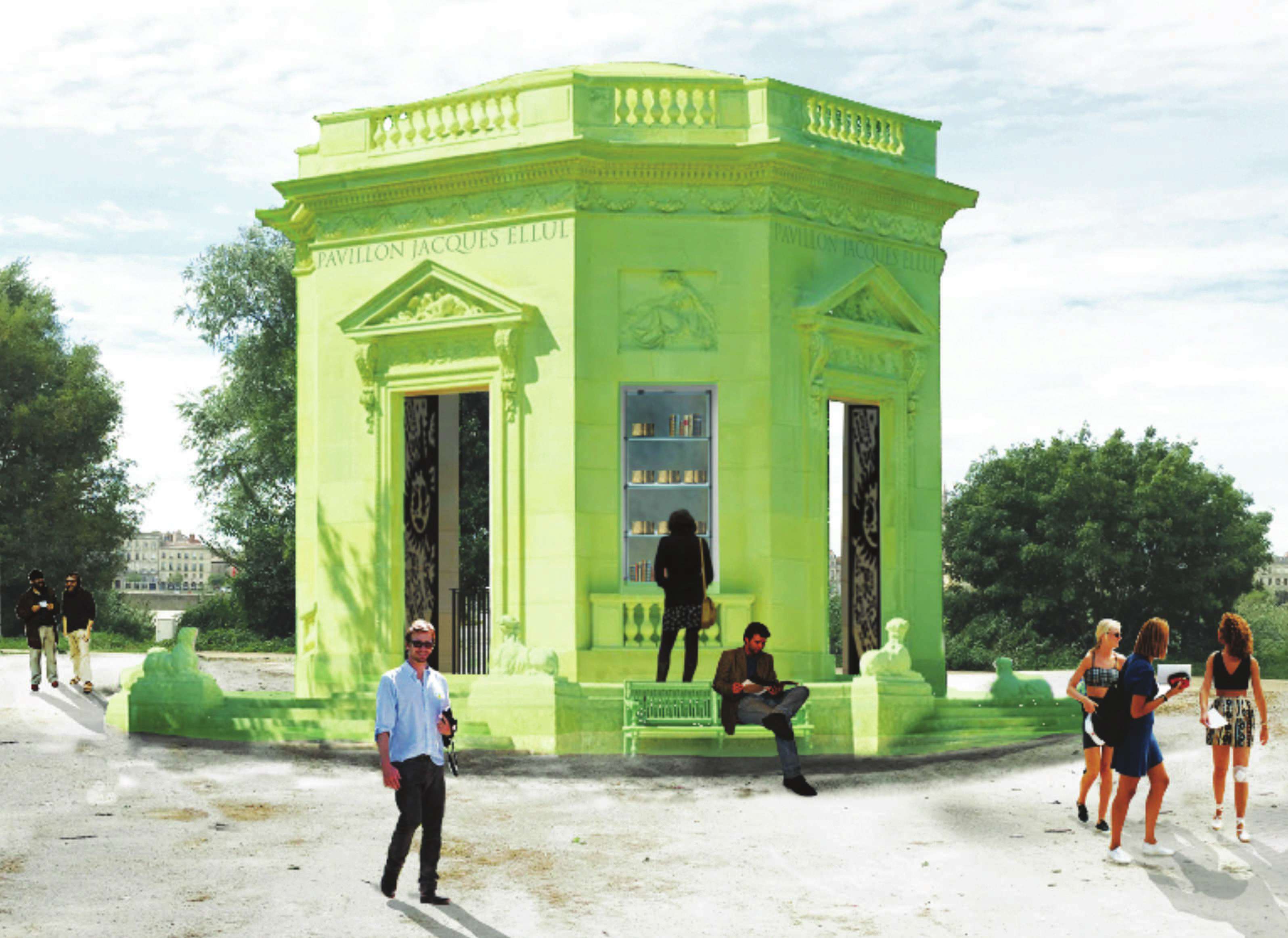 Le puits/Bibliothèque Jacques Ellul |Parc aux Angéliques, Bordeaux - Chantier 2020 Sur les quais de la rive droite bordelaise de la Garonne, ce pavillon imaginé par Suzanne Treister abrite une bibliothèque présentant les travaux de Jacques Ellul, penseur critique à l’égard de la Technique. Elle vise à permettre au public de discuter des enjeux liés à la façon de penser les technologies ainsi que leur utilisation. |