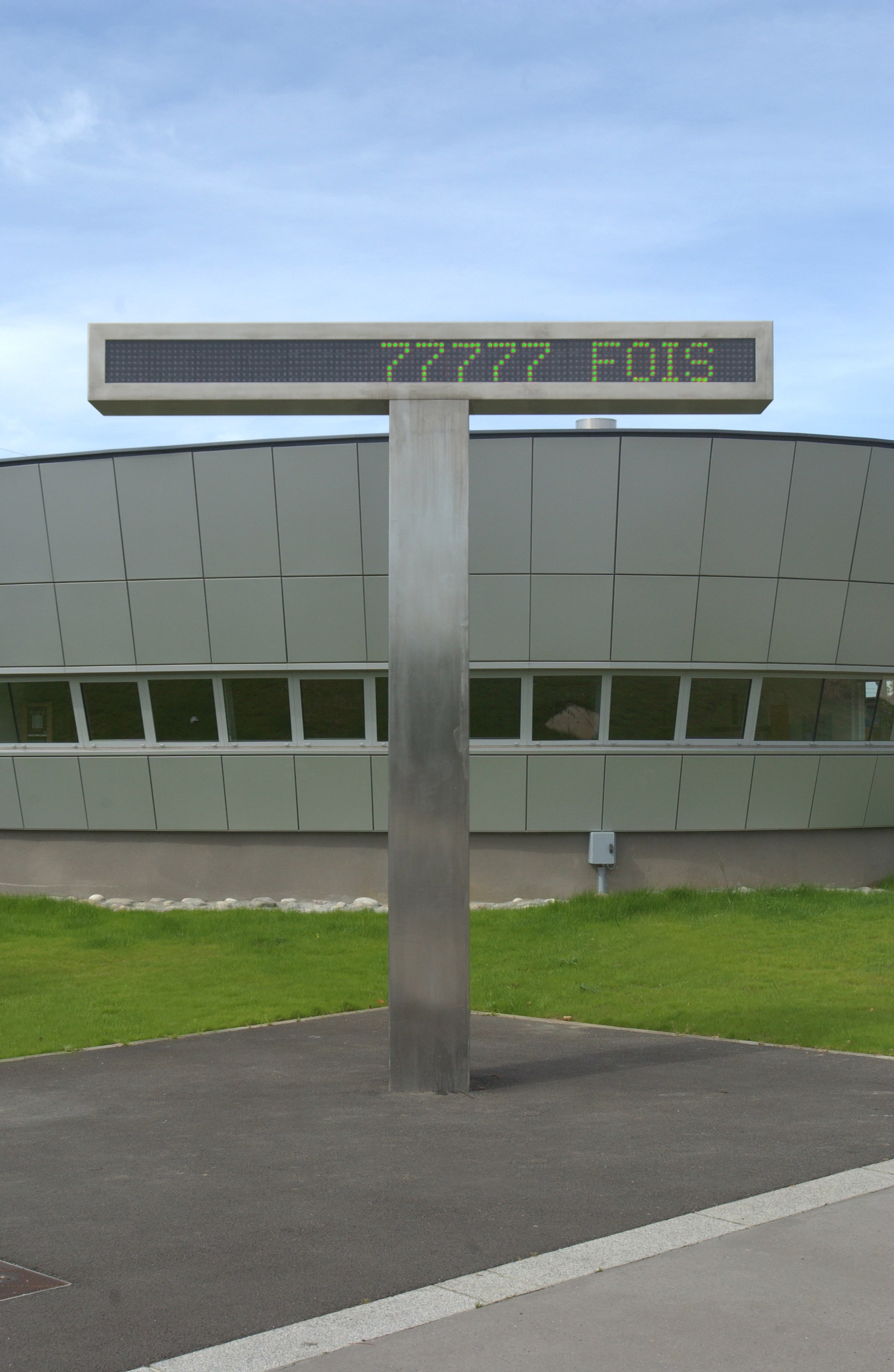 PLUSIEURS FOIS – Claude CLOSKY | Cenon, Station La Morlette, tramway ligne A – 2003 Le « T » de Claude Closky – T pour Tram, Trajet ou encore Temps – compte et indique inlassablement les passages du tramway, réduisant le voyage à un décompte, en clin d’œil à notre monde surpeuplé de messages et de chiffres. De rares variations d’affichage marquent les phénomènes spéciaux. Parviendrez-vous à capter ces instants ? ©Bordeaux Métropole |