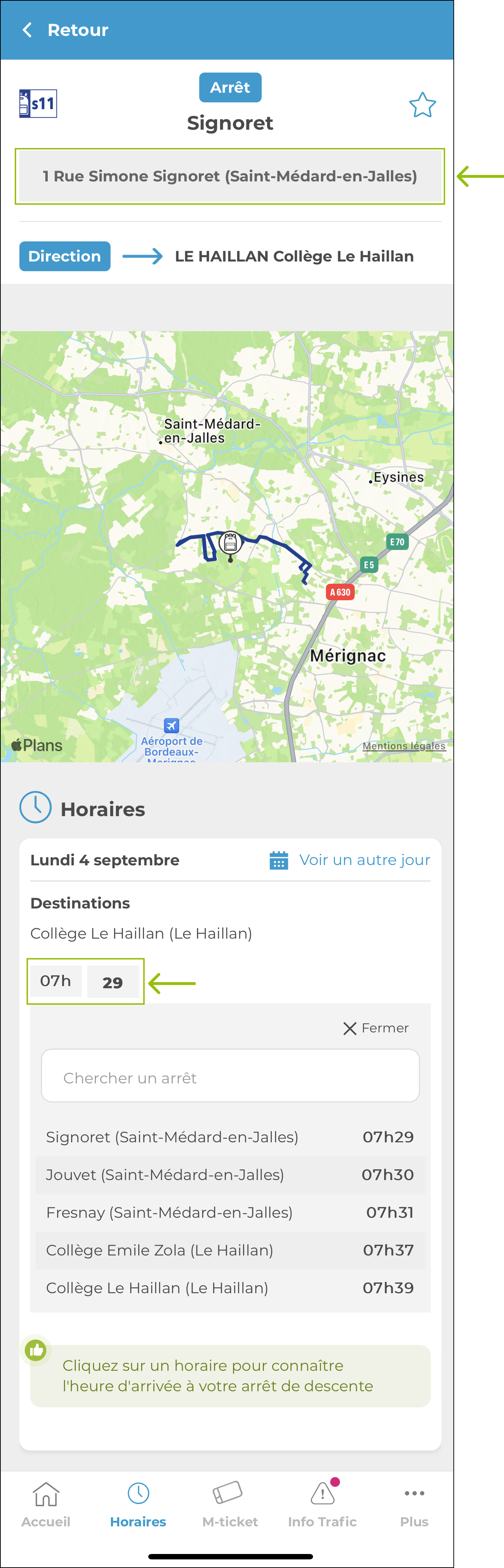 Connaître les lignes proches d'un établissement scolaire