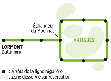 Pour utiliser flex'Artigues depuis ces quartiers, une réservation est nécessaire au préalable. Pour descendre dans un de ces quartiers, indiquez au conducteur votre destination à la montée dans le bus.