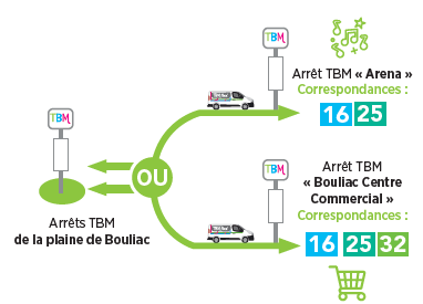 Tous les arrêts TBM de la zone flex'Bouliac sont desservis sur réservation, pour vous rendre à l'arrêt "Arena" ou "Bouliac Centre Commercial", ou en revenir !