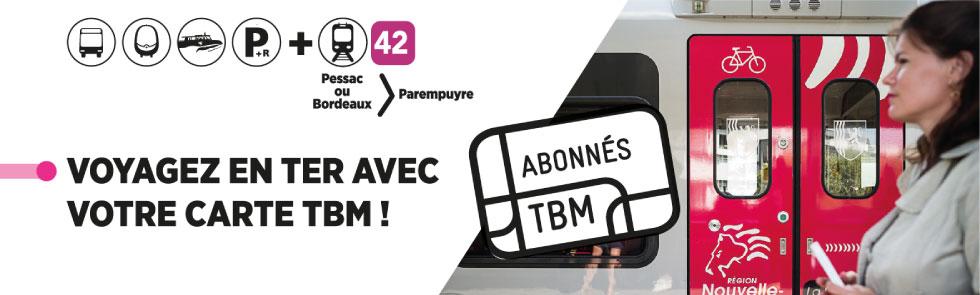 EN VOYAGEANT SUR LE RÉSEAU TER, VOUS ACCEPTEZ LES RÈGLES IMPOSÉES PAR LA SNCF. LE SERVICE CLIENT DE TBM NE SERA PAS EN MESURE DE DONNER SUITE AUX RÉCLAMATIONS LIÉES À VOTRE VOYAGE A BORD DU TER.