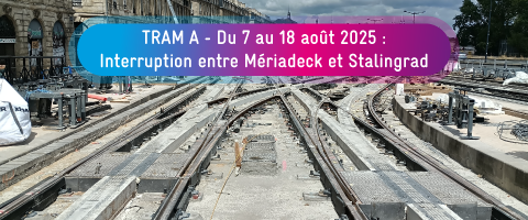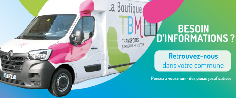 Projets en perspective, nouveautés du réseau, bons plans à ne pas manquer … Ne passez pas à côté de l’actualité du réseau TBM ! Tram E et F, Bus Express H... Ce qui a changé ce 6 décembre ! 13/12 - Match UBB vs Scarlets au stade Chaban Delmas : préparez votre venue avec TBM Spectacle : Nino Arial à Arkea Arena, préparez votre venue avec TBM ! Toute la CARTE JEUNE dans une seule appli ! Le Bato 2 : votre ligne gagne en fréquence ! 50 livres à découvrir chaque mois sur Premier Chapitre Inscrivez-vous au Panel TBM et améliorez le réseau TBM avec nous ! Fermeture de votre Parc-Relais Mérignac-Arlac Cinémas (CGR et Mégarama)